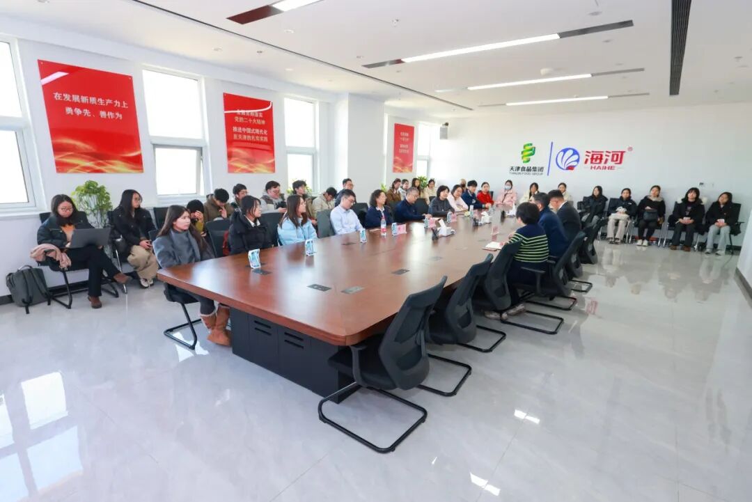 座谈会上,双方围绕党建共建、人才共育等话题展开交流。海河乳品有限公司党委副书记、工会主席马致彬介绍了企业近年来在品质传承、产品创新及市场拓展方面的探索实践。人力总监王静重点介绍了公司管培生项目和人才培养机制,并从人才需求角度为同学们在职业规划和能力提升等方面进行建议。双方还就实习实践、赛事合作、课程共建等方面展开探讨。