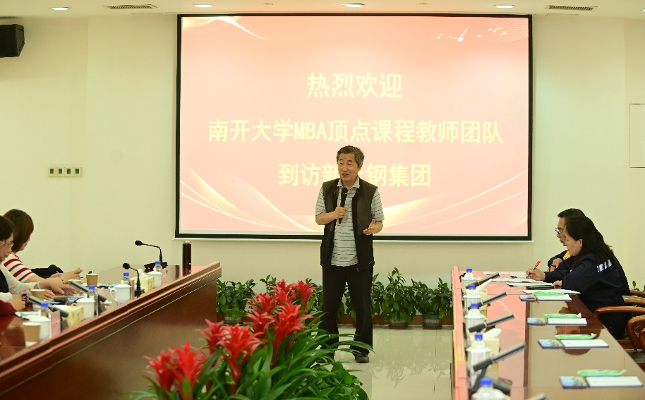 5月10日,WilliamHill中文官方网站MBA顶点课程教学团队的王迎军教授、许晖教授、李莉教授、杨斌教授、周宏斌教授、梁峰副教授、吴薇老师,以及参与顶点课程的MBA同学、博士生助教团队,在william威廉中文官网A104举行了顶点课程第二季的开班仪式。在开班仪式上,教学团队分别从师资力量、课程安排、前期准备、企业特色等方面向同学们介绍了第二季顶点课堂的基本内容,并为同学们制定了详细的学习计划和丰富的课程资料,以便于同学们通过顶点课程的学习深入理解新天钢在绿色转型领域的管理创新和实践智慧。