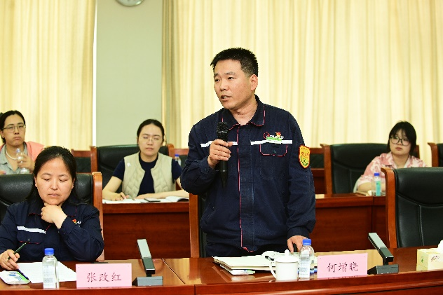 第一组(成员:谢博、周海涛、仲继宇、闻天歌、李洪涛)的汇报内容主要包括钢铁行业分析、绿色技术创新、绿色钢材产品开发、前沿方向分析4个方面。首先,从钢铁行业产业链和生产工艺出发,提炼了工艺改造、清洁能源替代、循环利用、数字技术应用的钢铁行业绿色转型4要素;然后,针对钢铁企业的绿色需求展开分析,从碳减排路径优化、构建循环经济体系、超低排放与绿色、绿色供应链管理、数字化与智能制造、ESG体系构建6个方面提出了钢铁行业绿色发展解决方案;其次,提出了工艺创新和产品创新的概念及其相互关系,说明了两者如何共同作用以提升企业的竞争力,并介绍了新天钢集团在绿色技术创新方面的实践案例;最后,分析了全球领先钢铁企业在绿色技术应用上的进展,如瑞典SSAB、德国蒂森克虏伯、中国宝武和河钢等企业的具体做法,为新天钢提供了宝贵的经验启示。天钢公司能源动力厂厂长何增晓结合企业实践,对汇报内容进行了补充和指导,从多个维度对企业节能减碳工作进行了介绍,就绿色新技术应用、创新精神融入、精益管理支持等方面工作进行了解读。