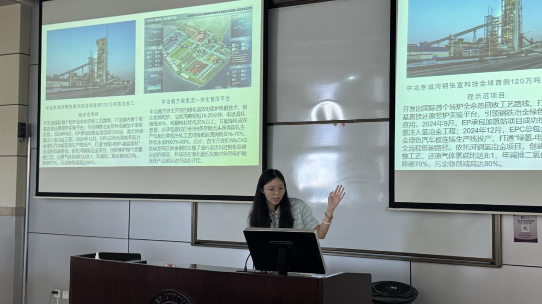 在下午的课堂上,同学们分小组对新天钢集团的绿色投资实践进行了汇报,李莉教授、杨斌教授、周宏斌教授和德龙钢铁集团投资总监裴海滨进行点评和答疑。聚焦于新天钢集团的绿色投资实践、数字化转型以及数据资产化探索,同学们从不同维度深入剖析了新天钢集团的发展之路。